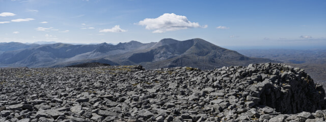 It was bright and windy today, but warm in sheltered spots. We went up 2 Corbetts, Cranstackie and Beinn Spionnaidh; they are relatively easy hills but have quite a lot of blocky boulders near their summits which slow progress. The blip is the view from Cranstackie’s summit looking south to Foinaven which dominates the view. We went to Oldshoremore and had a paddle in the sea. The extra is a collage of morning and evening views of Foinaven from our parking spot, Oldshoremore Beach and Foinaven with an early cloud cap.
